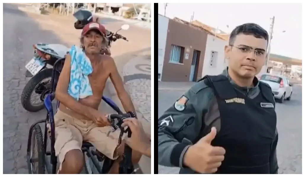Um senhor cadeirante vítima de engasgo foi salvo por um policial militar em uma avenida de Iguatu, no centro sul do Ceará, na tarde desta quarta-feira (23).