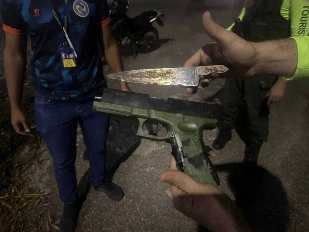 O suspeito, que não teve a identidade divulgada, utilizava um simulacro de arma de fogo e uma faca para cometer o assalto e chegou a lesionar uma das vítimas abordadas por ele no coletivo. Além disso, sabe-se que ele estaria acompanhado de uma mulher, que já não estava no local no momento da chegada dos policiais.
