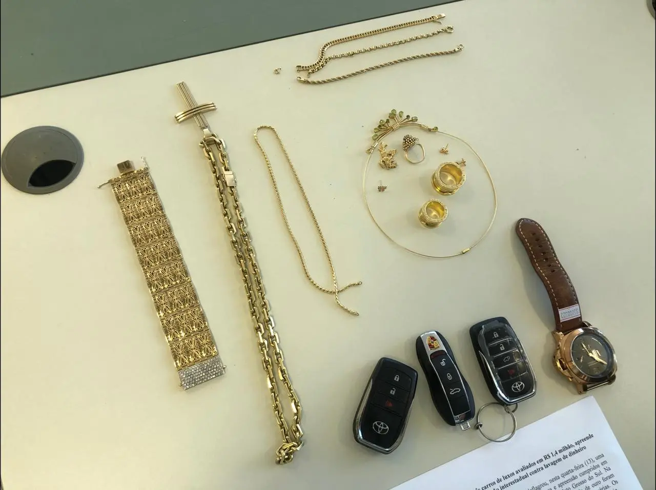 Além do Porsche (avaliado em R$ 900 mil), a Polícia Civil apreendeu outros dois veículos de alto padrão, joias de ouro que pesam 0,5 kg e valem cerca de R$ 150 mil, um relógio, caixas de som e 8 aparelhos celulares.