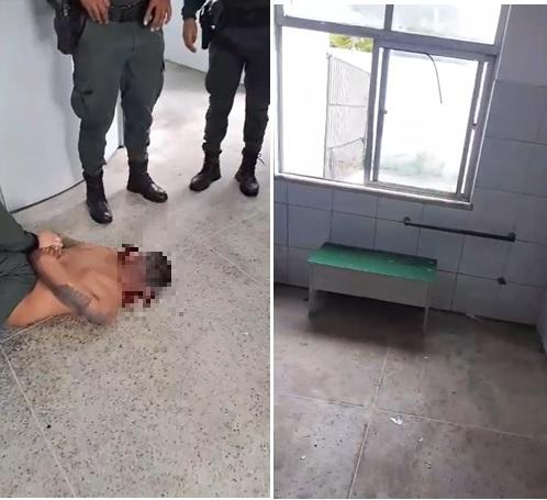 Preso tenta pular janela para fugir da delegacia, quebra vidro, se fere e é contido; veja