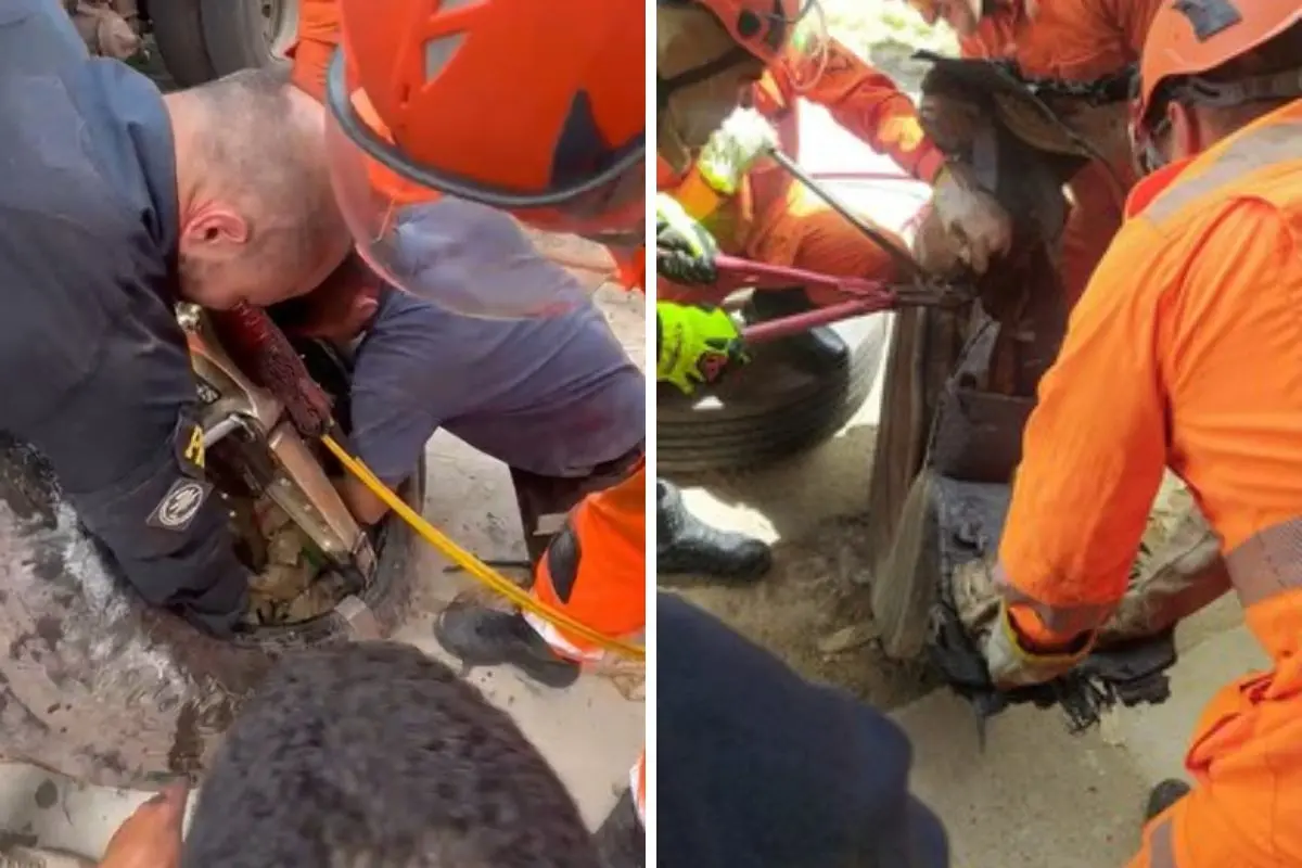 Equipes do Corpo de Bombeiros Militar do Ceará (CBMCE) auxiliaram os agentes pois foi preso utilizar um equipamento de desencarceramento para abrir os pneus do caminhão.