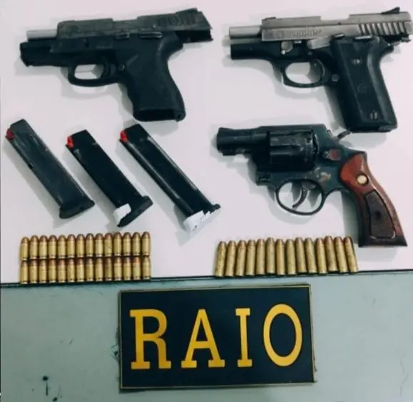 De pronto, o suspeito foi abordado e na bolsa foram encontradas três armas, sendo duas pistolas e um revólver, além de 42 munições. Com a autorização do morador, os PMs adentraram no imóvel e lá estavam outros quatro suspeitos, sendo três menores de idade."