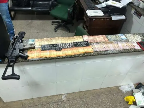 No local, foram apreendidos um simulacro de fuzil, 108 gramas de cocaína, certa quantidade de dinheiro em espécie; além de cinco câmeras de segurança, CPU, HD externo e celulares.