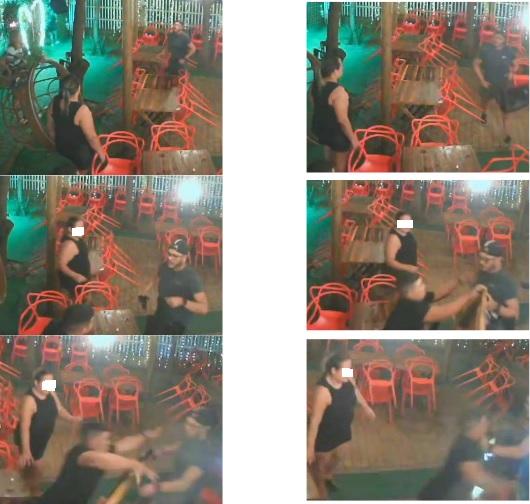 Câmeras mostram que minutos após o início da discussão, o suspeito partiu para cima da vítima já sacando a sua pistola.
