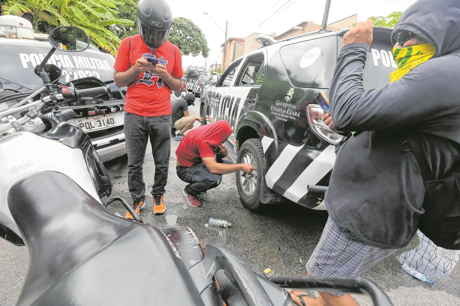 Aproximadamente 60 policiais militares, que usavam balaclava e estavam amotinados no 18º BPM, no dia 18, cercaram uma viatura policial nas proximidades. Naquele momento, uma composição do Comando de Policiamento de Choque (CPChoque), da Polícia Militar, passou pelo local e prendeu três suspeitos em flagrante: os soldados Francier Sampaio de Freitas, Jardeson Feitosa Tabosa e José Carlos Soares de Morais Júnior (dois deles armados). Na ação policial, ainda foi apreendida uma mochila com a identidade funcional e a arma do cabo David Gonzaga Formiga.