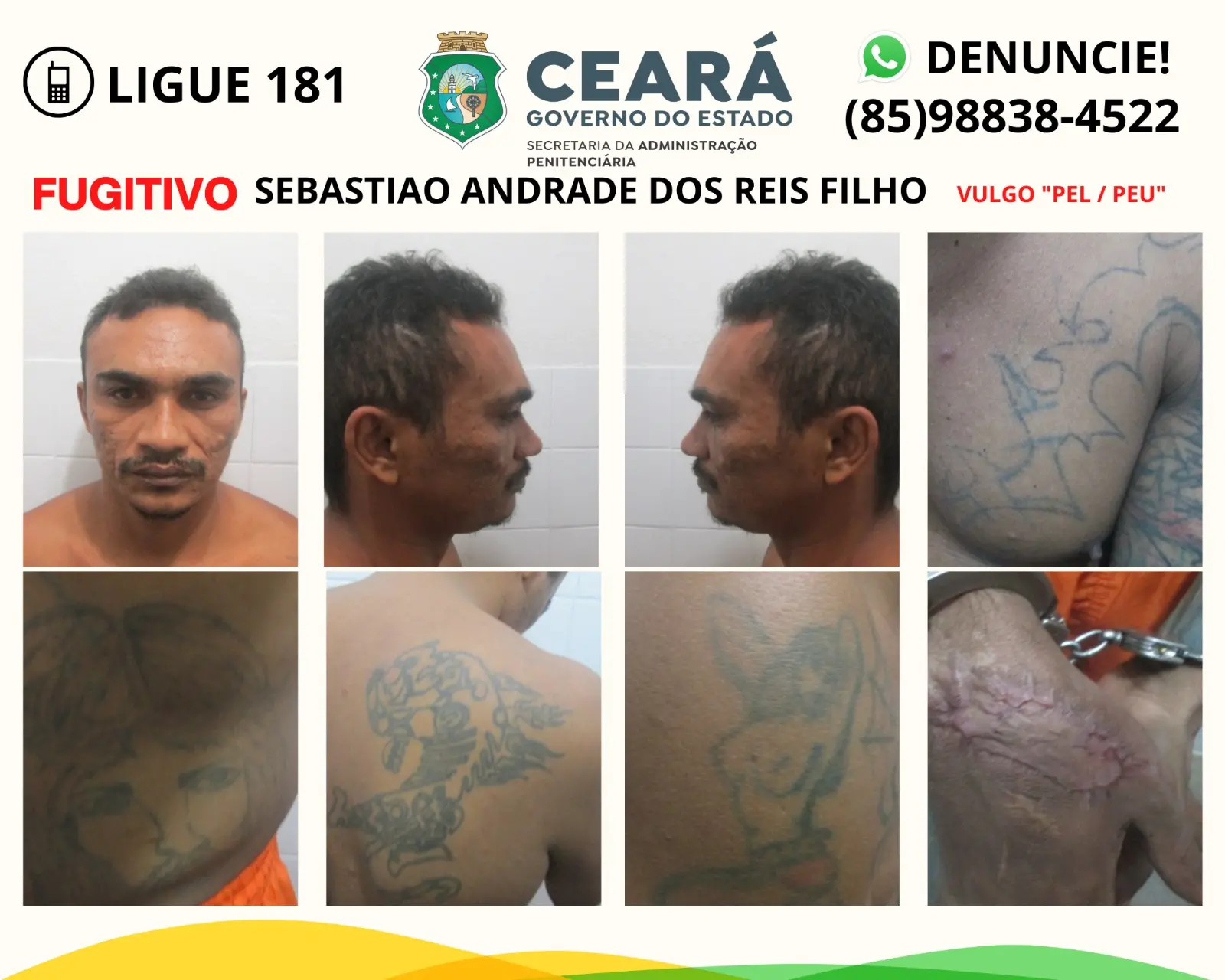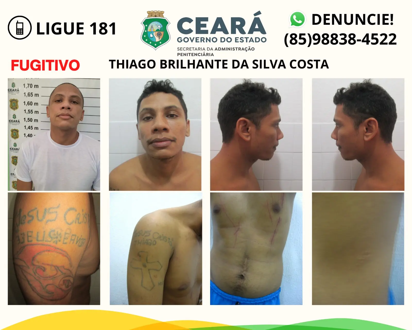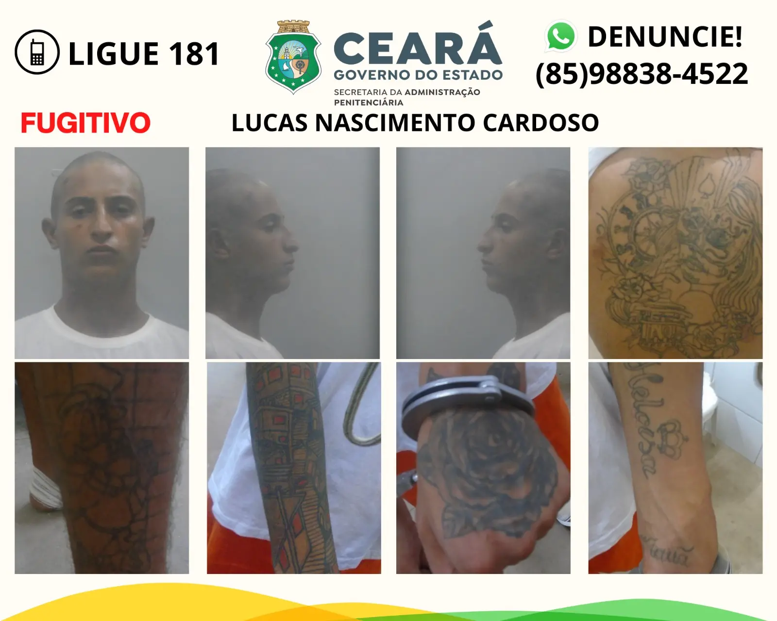 Ele já teria fugido também de um centro socioeducativo, quando era adolescente e foi apreendido como infrator. Também já havia fugido de uma unidade penitenciária, em 2018, após ser condenado por um homicídio na cidade de Pacajus.