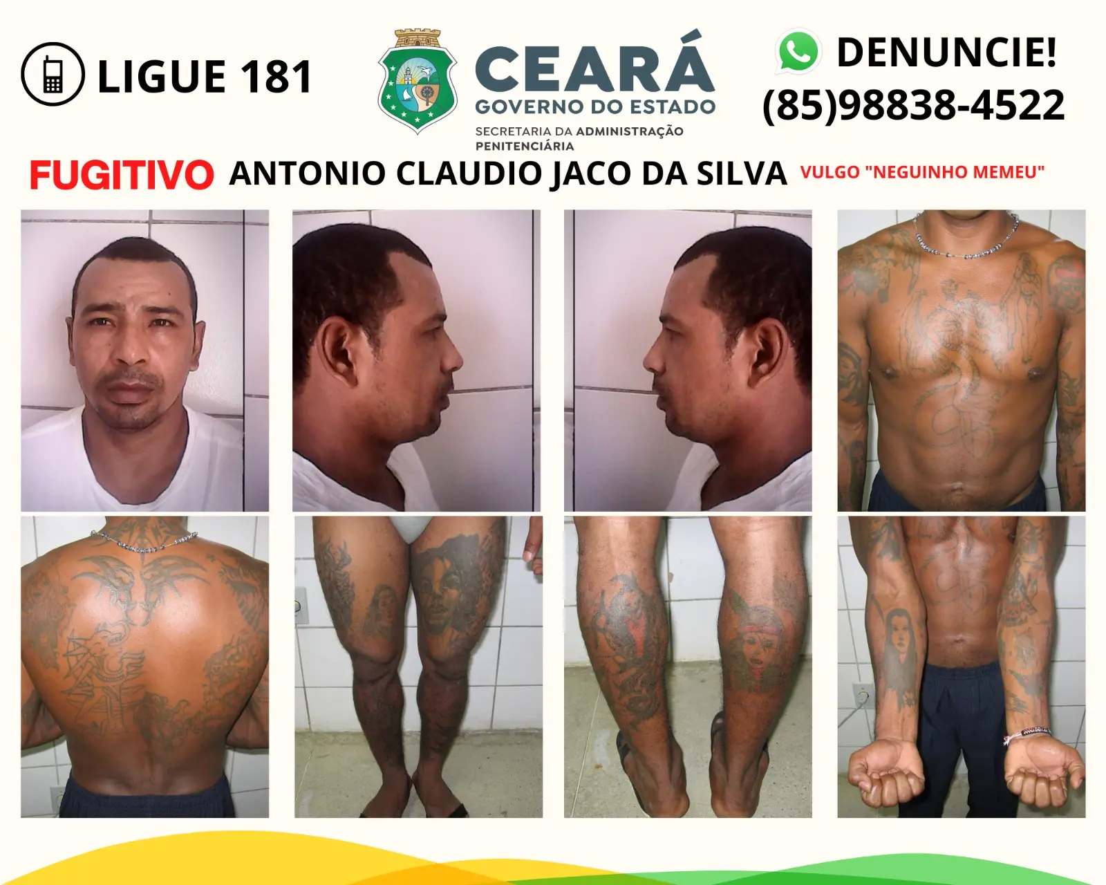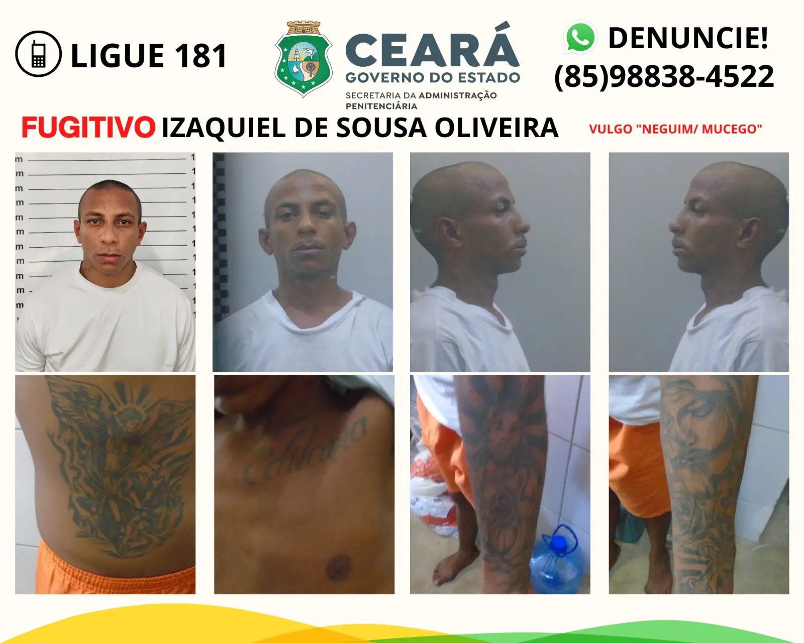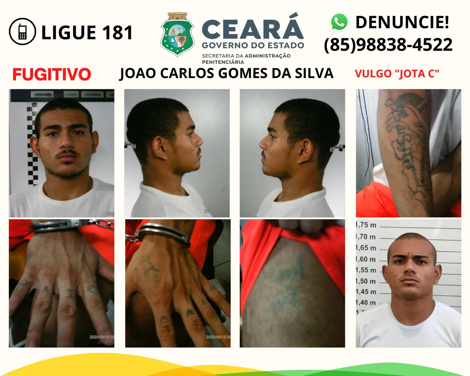 Ele já teria fugido também de um centro socioeducativo, quando era adolescente e foi apreendido como infrator. Também já havia fugido de uma unidade penitenciária, em 2018, após ser condenado por um homicídio na cidade de Pacajus.