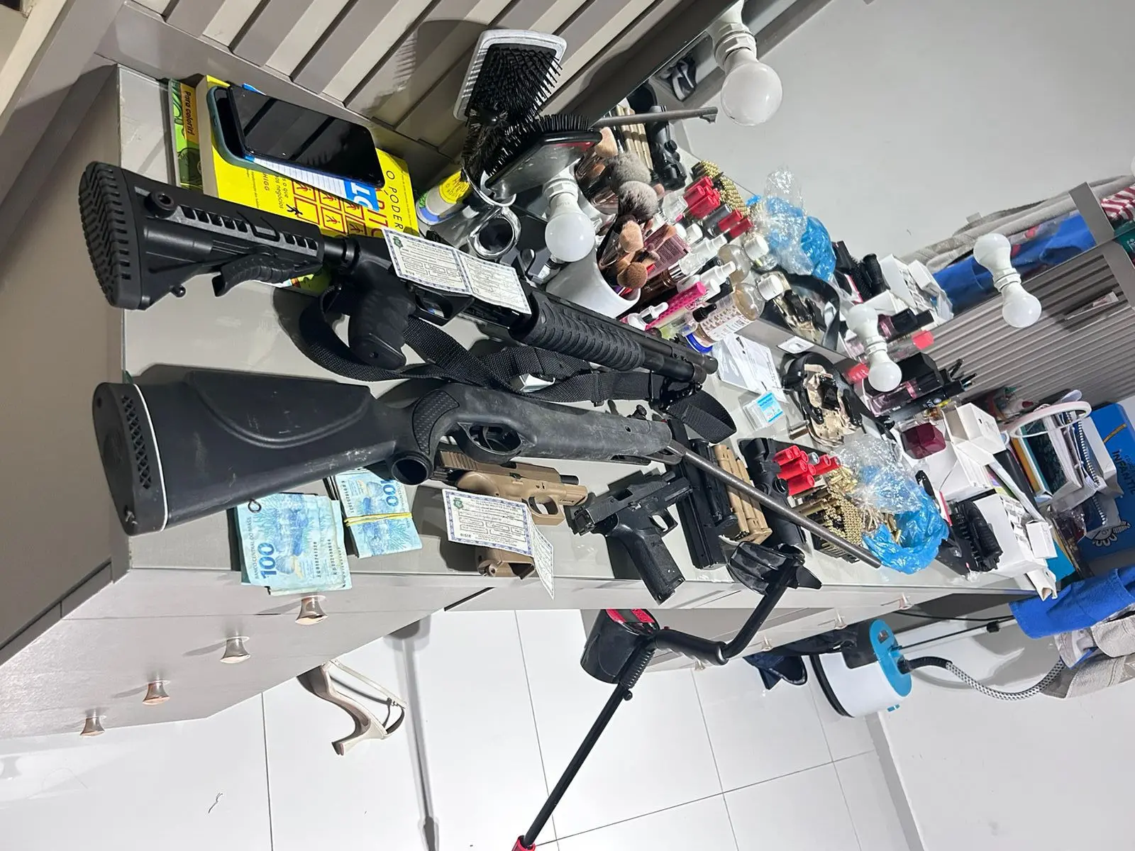 Armas longas, pistolas, pequenas quantidades de drogas, dinheiro e aparelhos celulares foram apreendidos com os suspeitos, durante o cumprimento dos mandados de busca e apreensão.