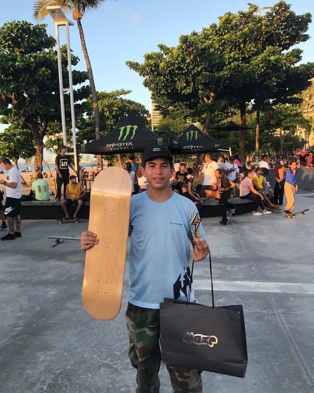 O skatista Marco Felipe Mendes de Sousa, o Felipe Maracajá, de 15 anos, foi executado a tiros por homens de uma facção criminosa no bairro Vicente Pinzon, em Fortaleza, nessa segunda-feira (30). Um suspeito foi detido pelo crime.