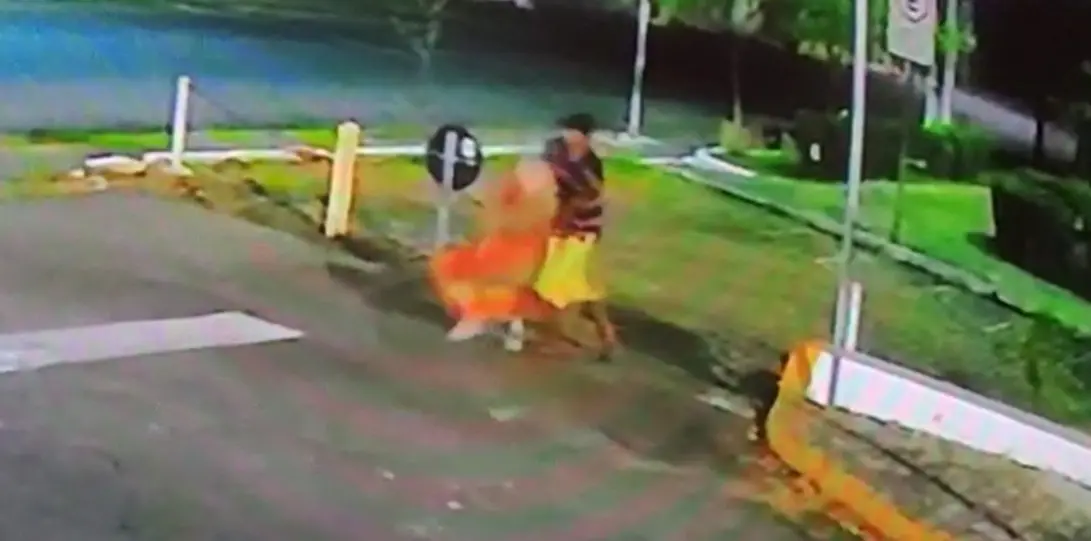 Nas imagens, Larraya está atravessando a rua na faixa de pedestres quando José chega por trás, correndo, e a puxa pelo braço. Ele chega a puxar o cabelo dela antes de a empurrar no chão.