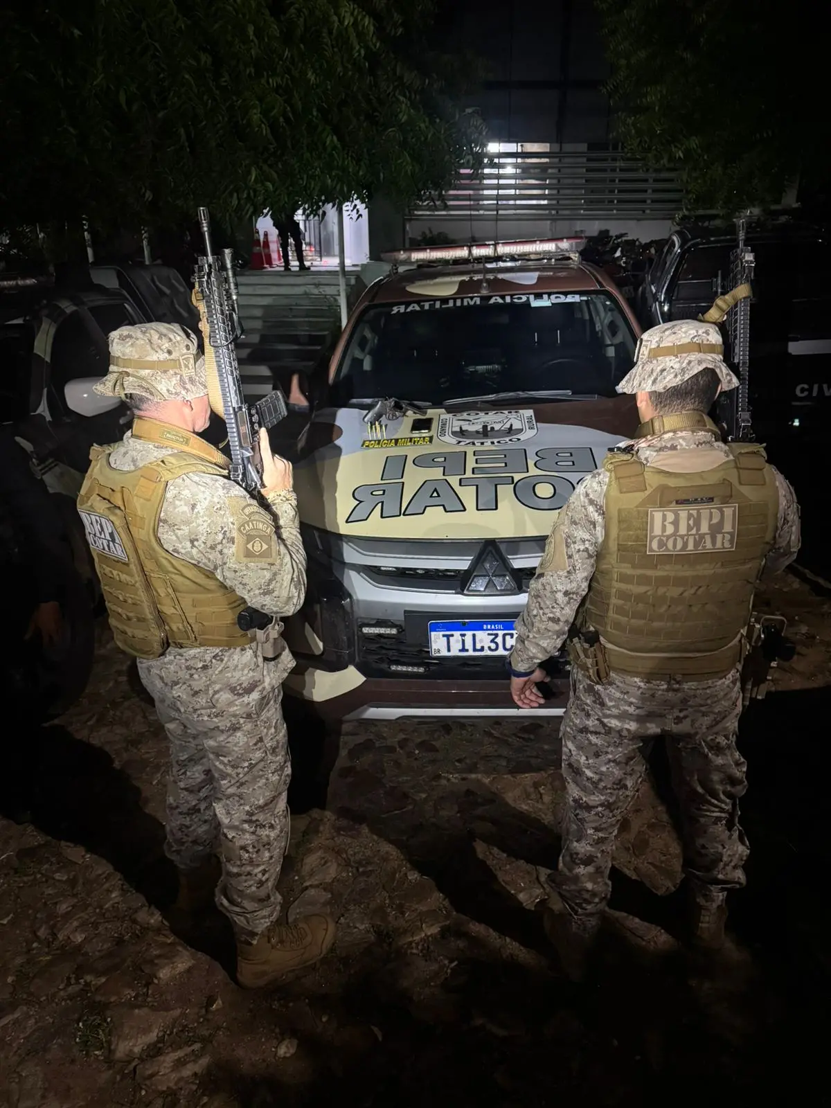 "Diante das denúncias, foi montada uma operação integrada com equipes da Força Tática do 29º BPM, do 2º Pelotão da 3ª Companhia do 3º Batalhão de Policiamento de Rondas de Ações Intensivas e Ostensivas (2º Pel/ 3ª Cia/3º BPRaio), Comando Tático Motorizado (Cotar) e BEPI".