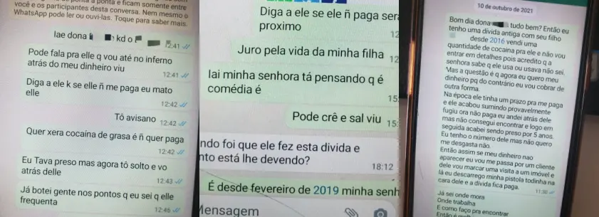 Trechos de conversas via WhatsApp, divulgados pela Polícia, revelam que o suspeito fazia ameaças contundentes aos parentes dos pacientes, alegando que não teriam honrado dívidas de drogas.