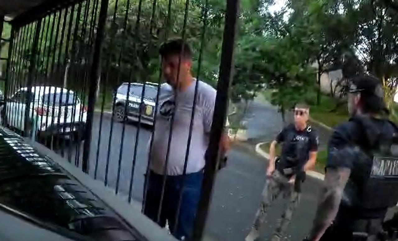 Os agentes surpreenderam o suspeito dentro do quarto onde ele ainda dormia. Ele não reagiu à prisão, como mostra a câmera corporal dos agentes de segurança, e foi encaminhado à 1ª Delegacia da Divisão de Captura.