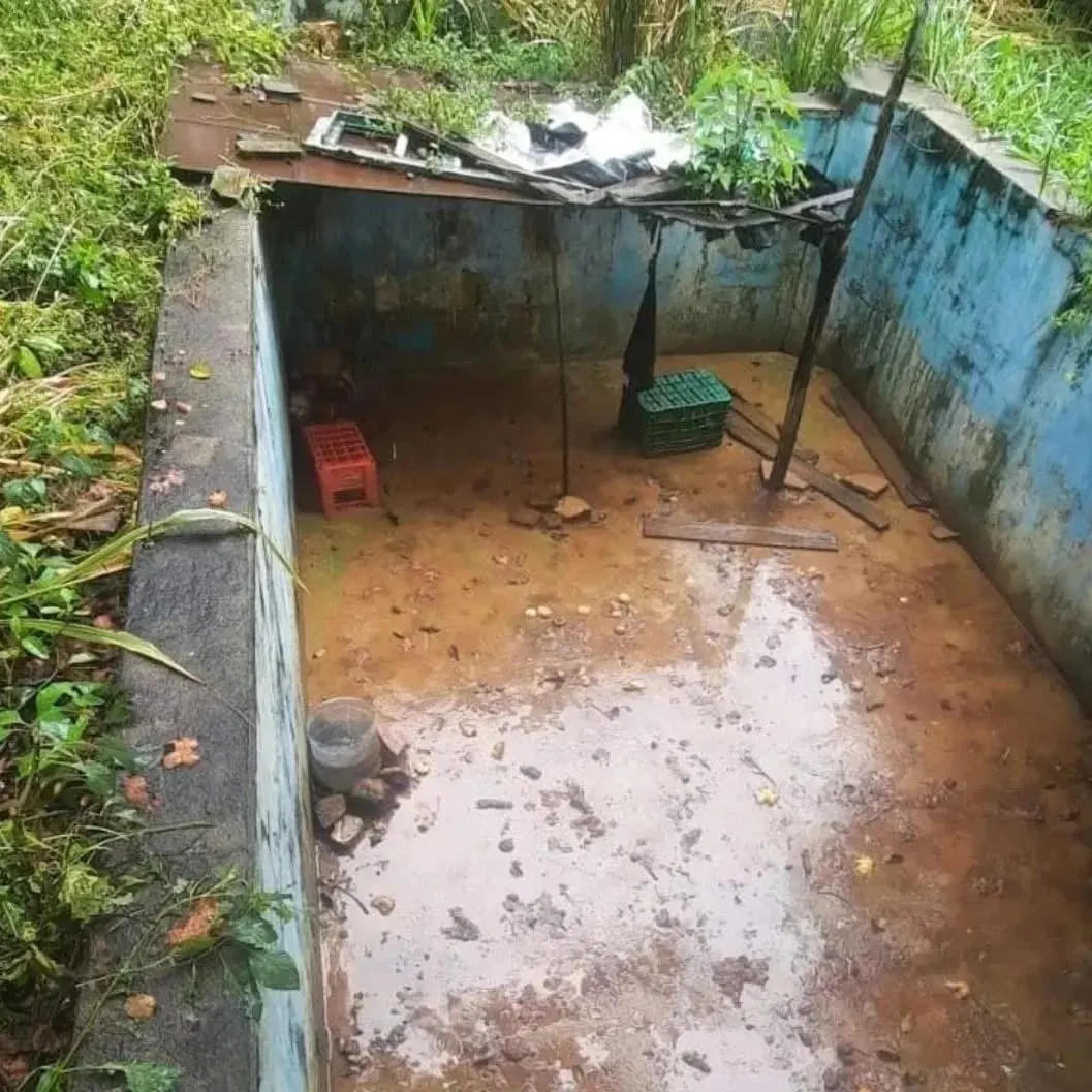 Os animais estavam em uma piscina abandonada, sem alimentação ou higiene
