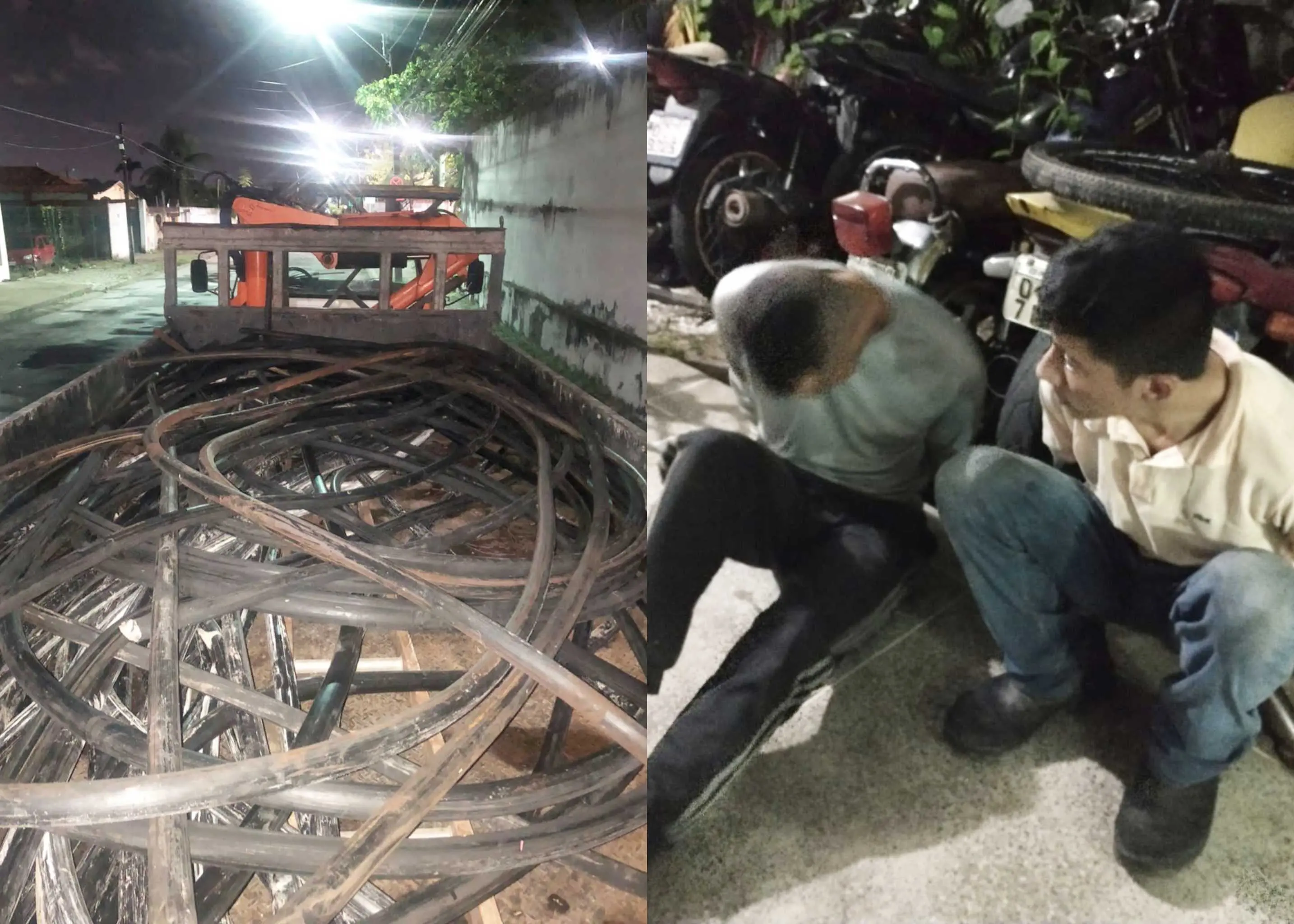 "Na Avenida José Américo, houve uma ocorrência repassada pela Coordenadoria Integrada de Operações de Segurança (Ciops). Dava conta que dois homens em um veículo celta prata estavam furtando fios. Através do videomonitoramento, identificamos um celta, um caminhão carregado coma carga de fios furtado e prendendo as quatro pessoas", explicou o comandante do 19º Batalhão da Polícia Militar, tenente-coronel Alexandre Silveira.