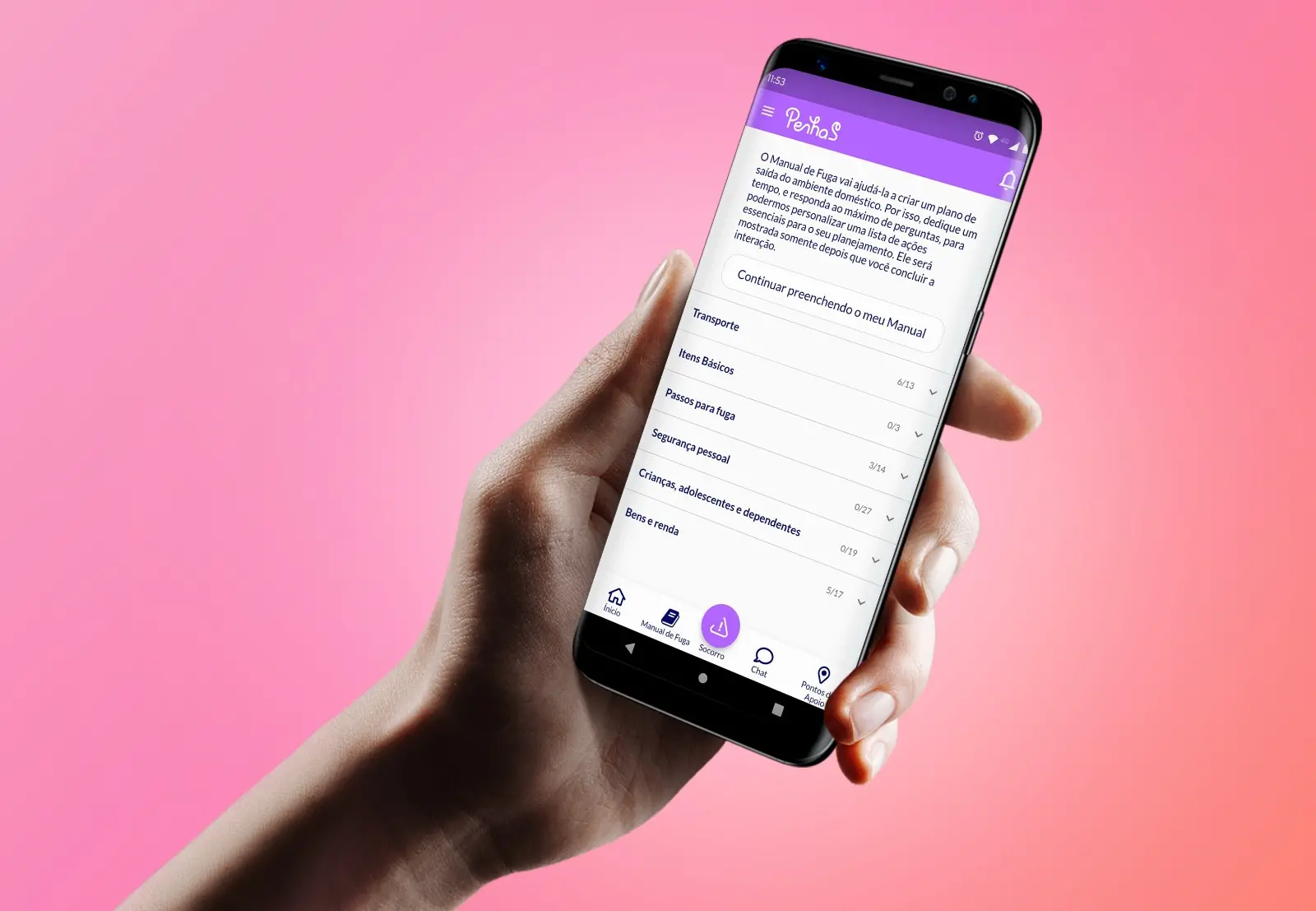 O aplicativo PenhaS lançou, no último dia 8 de março, uma nova funcionalidade, nomeada de Manual de Fuga. A ferramenta, desenvolvida pela Organização Não-Governamental (ONG) Instituto AzMina, tem abrangência nacional e está disponível para baixar gratuitamente.