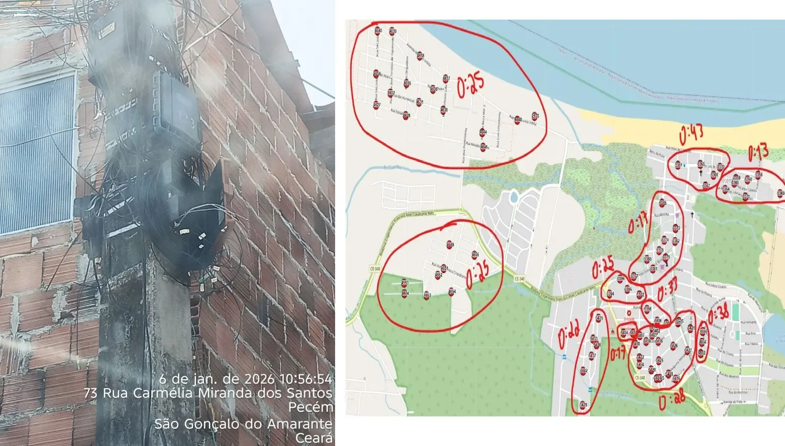Em agosto de 2025, nessa mesma região, dois homens em uma moto foram flagrados por câmeras de segurança se aproximando das Caixas de Terminação Óptica, conhecidas como CTOs, instaladas em postes de telefonia, e destruindo os equipamentos.
