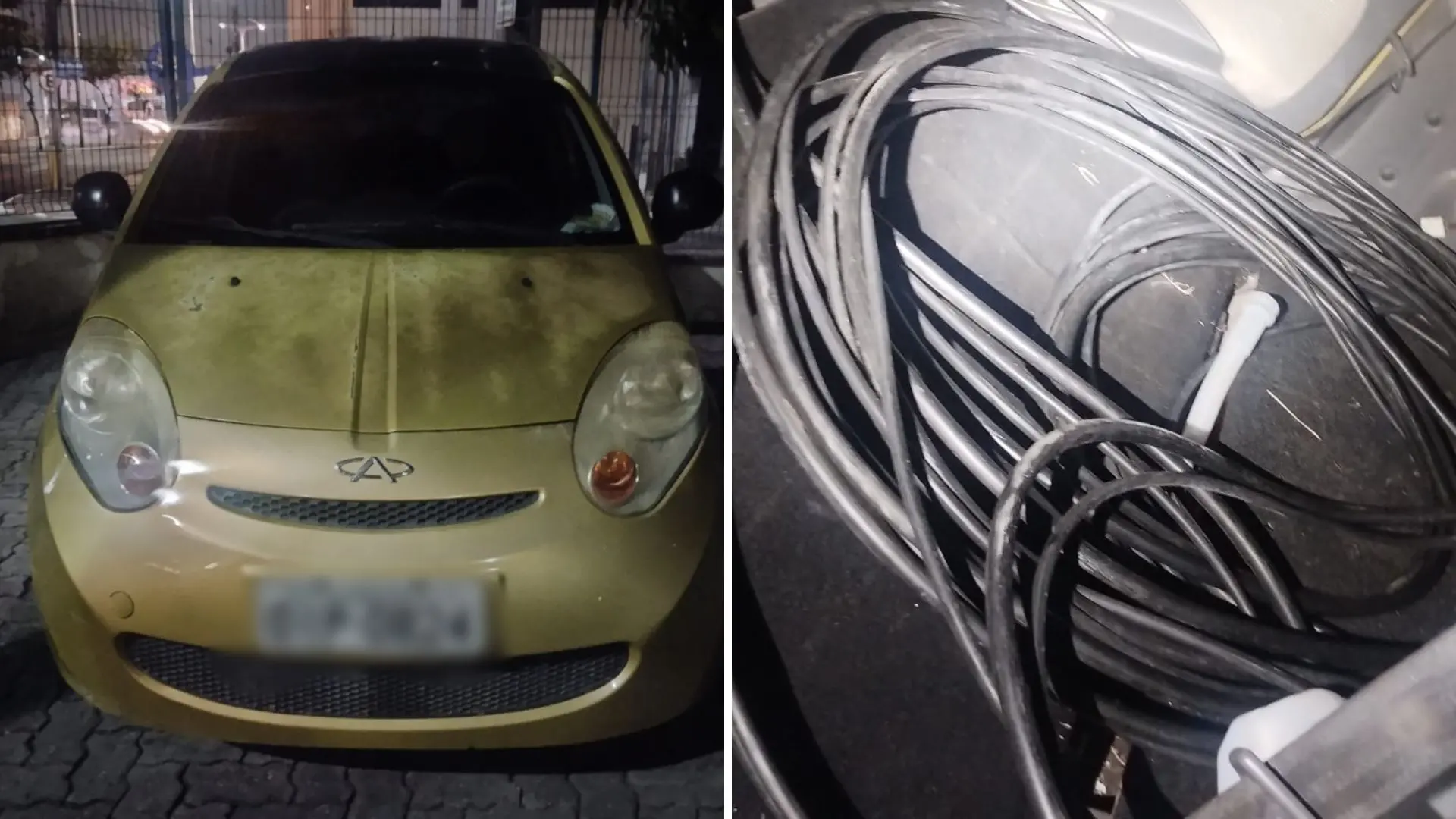 Três homens foram presos em flagrante por furto de cabos de telefonia, na última terça-feira (13), no bairro José Walter, em Fortaleza. Na ação, os policiais apreenderam ainda um carro e outros materiais utilizados no crime, como serra, faca, tesoura e alicate.