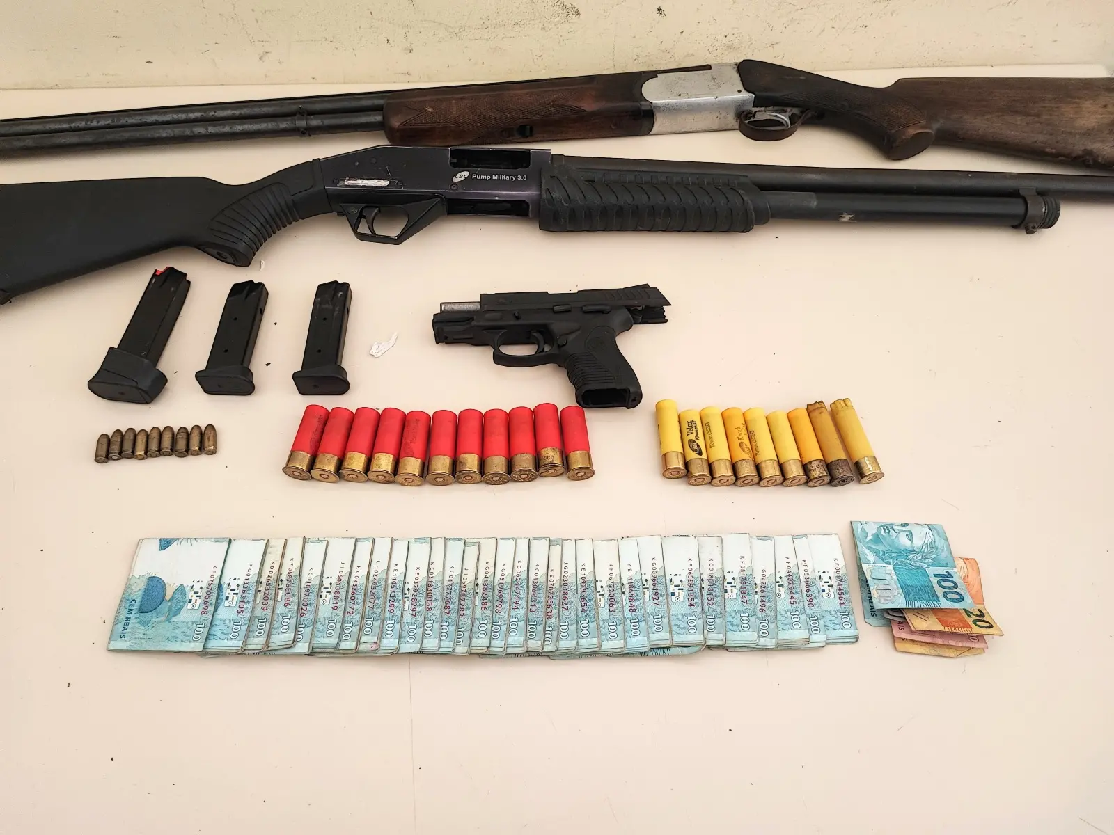 Participaram da operação, no município baiano de Juazeiro, a Força Integrada de Combate ao Crime Organizado do Ceará (FICCO/CE), a FICCO/BA, o Departamento de Inteligência (DIP) da Polícia Civil do Ceará (PC-CE) e a Companhia Independente de Policiamento Especializado (CIPE-Caatinga) da Polícia Militar da Bahia (PMBA). Com os suspeitos, foram apreendidos uma pistola calibre 380, duas espingardas calibres 12 e 20, carregadores, munições e R$ 30 mil em espécie.