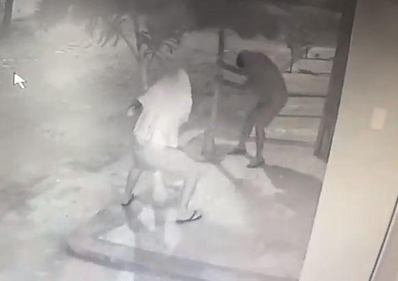 Vídeo mostra dupla furtando palmeiras da calçada de casa na Sapiranga