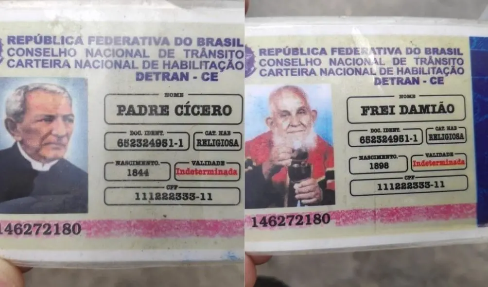 Um idoso de 62 anos foi parado em uma blitz de trânsito na AL-210, no município de Paulo Jacinto, em Alagoas, nesta quarta-feira (10). A ação poderia ser só algo rotineiro caso ele não tivesse mostrado carteiras de habilitação com nomes e dados de Padre Cícero e Frei Damião à Polícia. As informações são do portal G1.