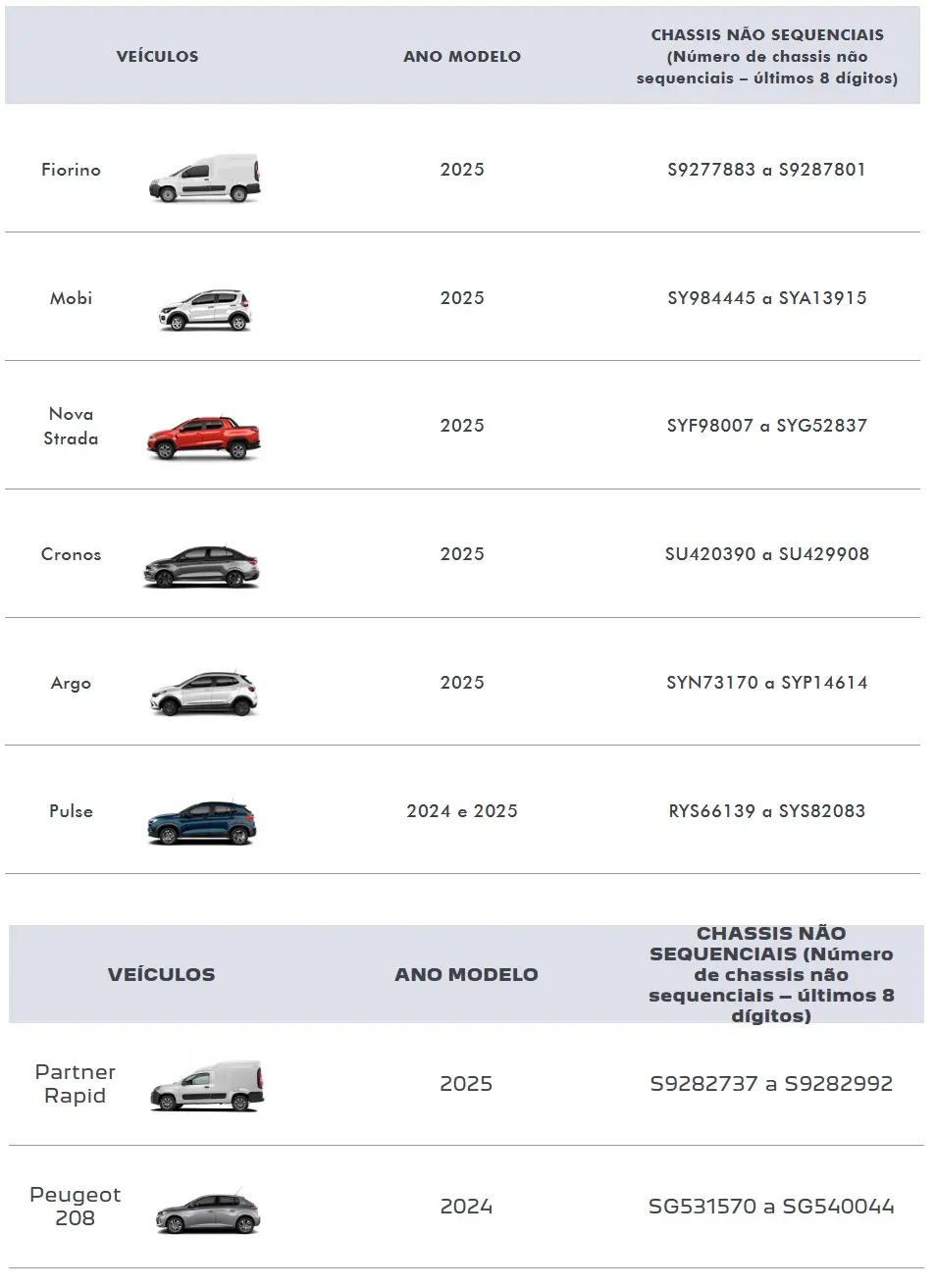 Ao todo, 21.044 unidades da Fiat foram afetadas, enquanto 449 da Peugeot terão de voltar às concessionárias para a revisão.
