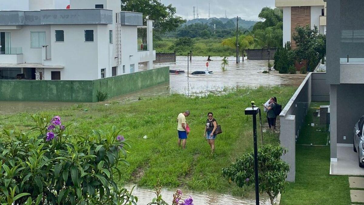 Condomínio de luxo em Ilhéus fica alagado e moradora pede resgate pelas redes sociais; vídeo