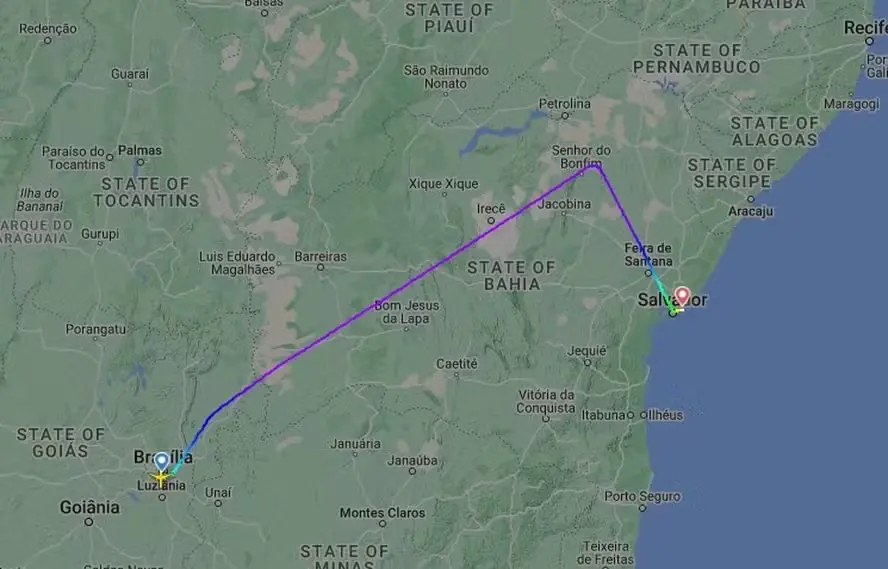 Após ser atendido pela equipe médica, a aeronave decolou às 15h08 do Aeroporto Internacional Luis Eduardo Magalhães, em Salvador, com destino ao Aeroporto Presidente Castro Pinto, em João Pessoa. A aeronave pousou às 16h17.
