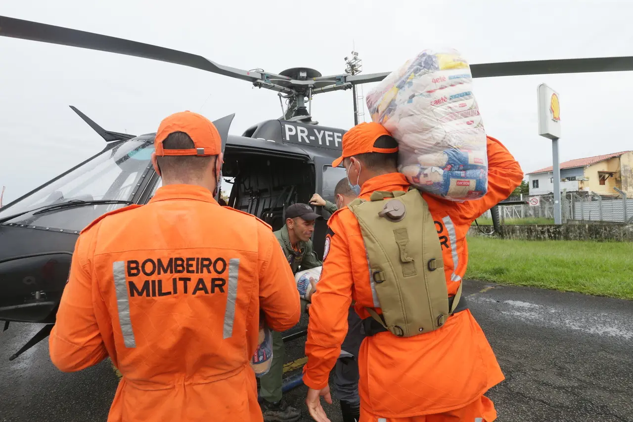 Órgãos de segurança e entidades profissionais recebem alimentos e roupas para vítimas de enchentes e alagamentos