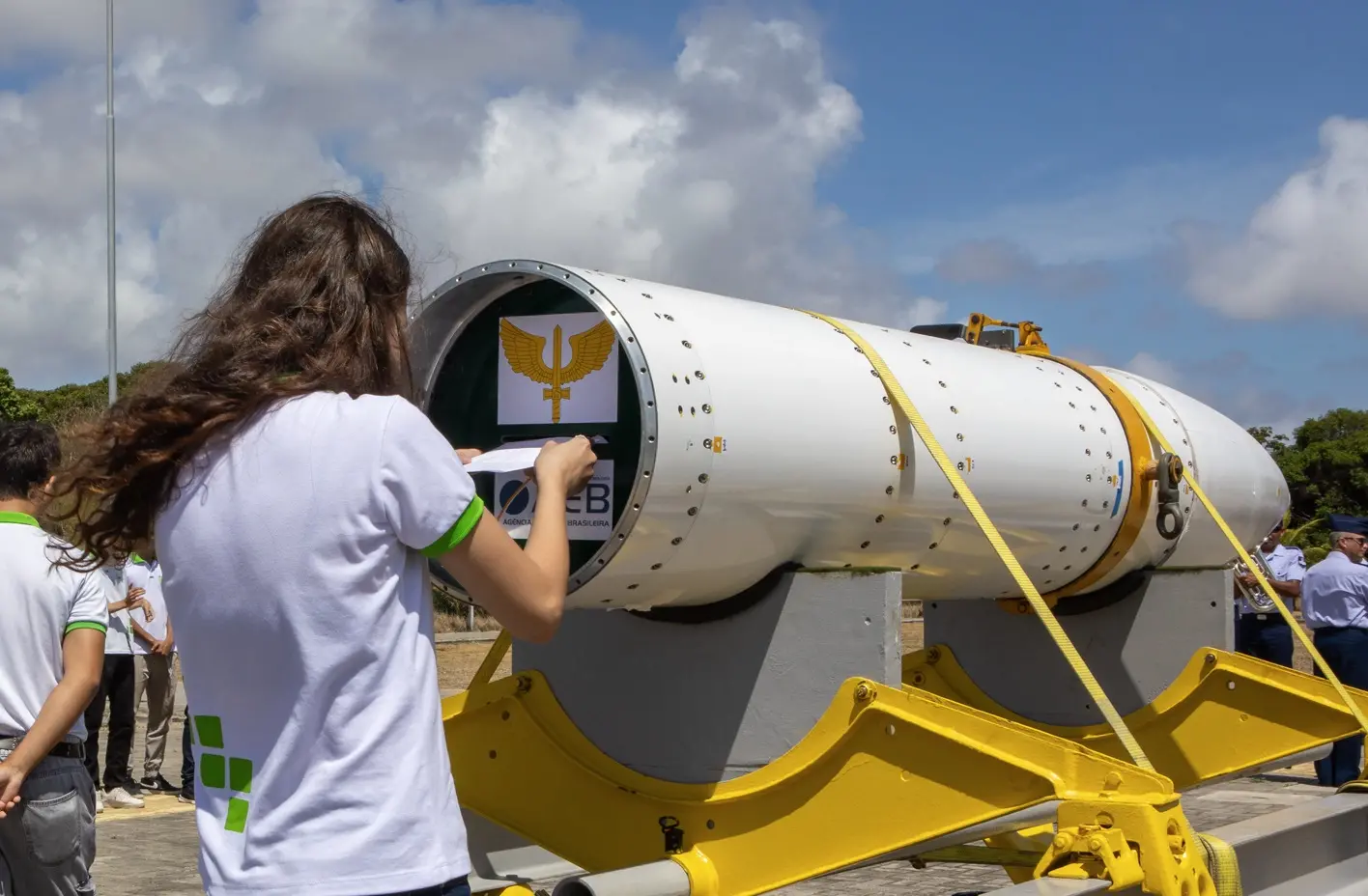 As cartas foram inseridas no foguete durante uma cerimônia realizada no Centro Vocacional Tecnológico Espacial Augusto Severo, no último dia 21.