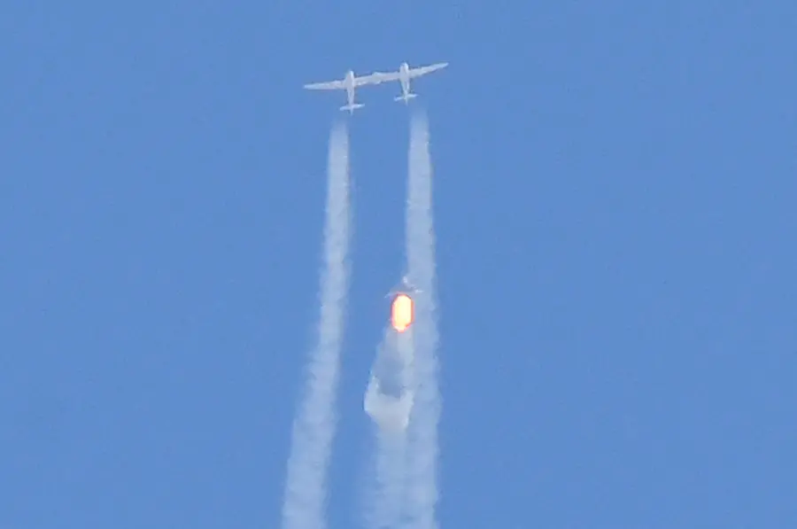 A uma altitude de cerca de 15 quilômetros, a nave - do tamanho de um jato particular - se soltou e acionou seu motor para uma subida supersônica a uma altura de mais de 80 quilômetros, o limite estabelecido nos Estados Unidos para a fronteira espacial.