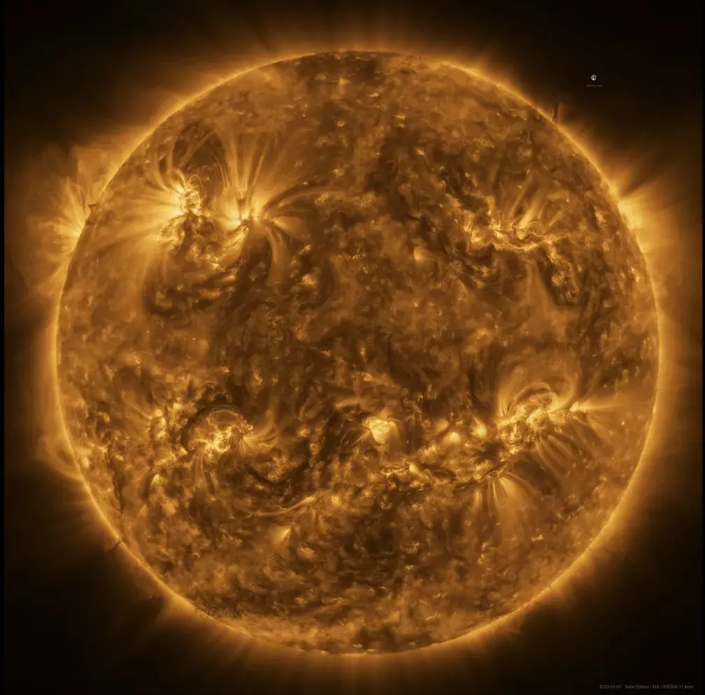 Conforme a ESA, a fotografia é um mosaico de 25 imagens individuais tiradas pelo telescópio de alta resolução Extreme Ultraviolet Imager (EUI).