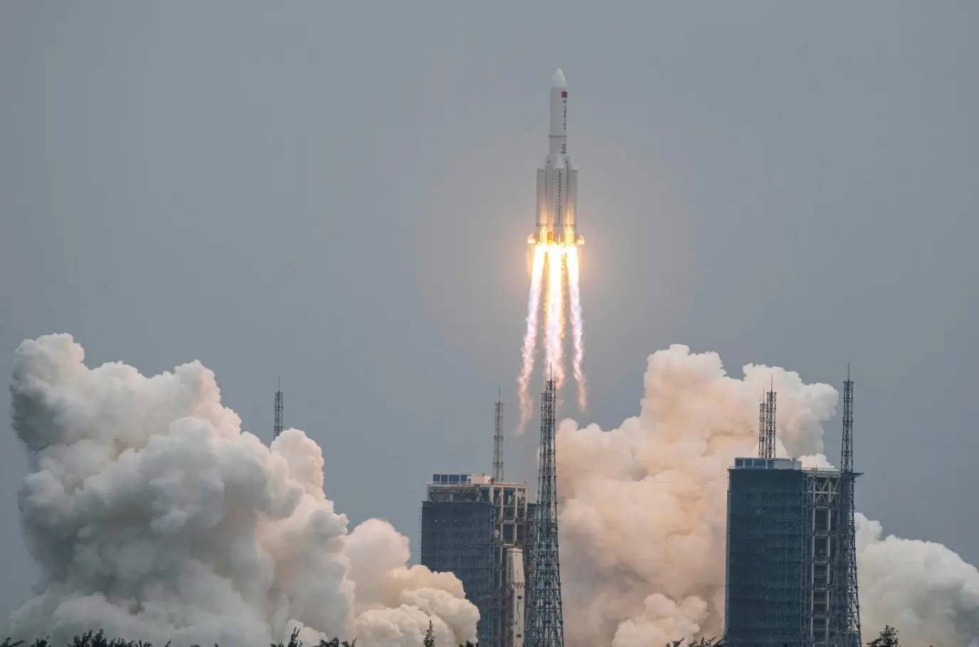 "O foguete Longa Marcha-5B voltou a entrar na atmosfera sobre o Oceano Índico em 30 de julho, às 16h45 GMT, confirmou o Comando da Força Espacial dos Estados Unidos em conta no Twitter.