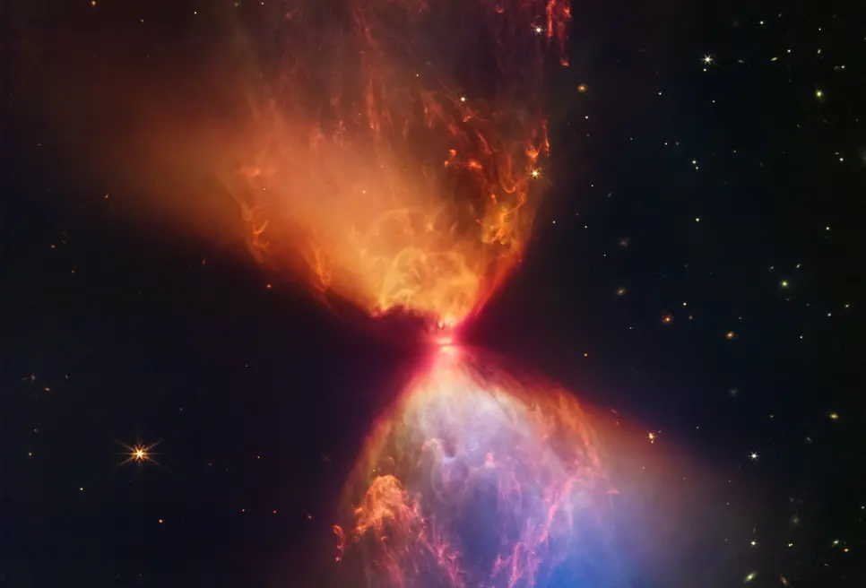 Telescópio James Webb registra 'ampulheta de fogo' enquanto nova estrela se forma