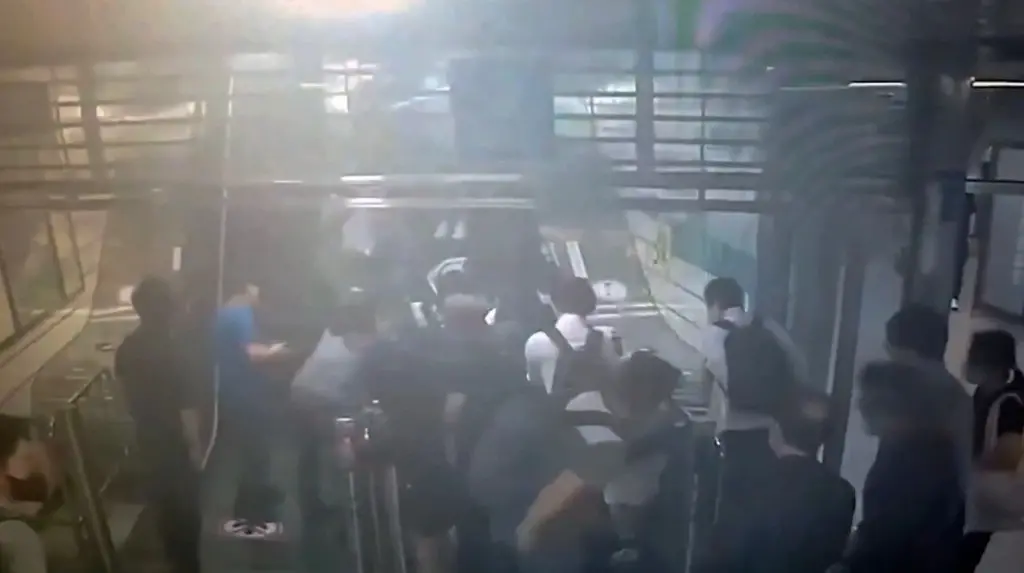 Câmeras de segurança gravaram o momento, registrando que barras de controle impedem os passageiros de saírem da escada. Com isso, as pessoas que estavam atrás acabaram por esmagá-las.