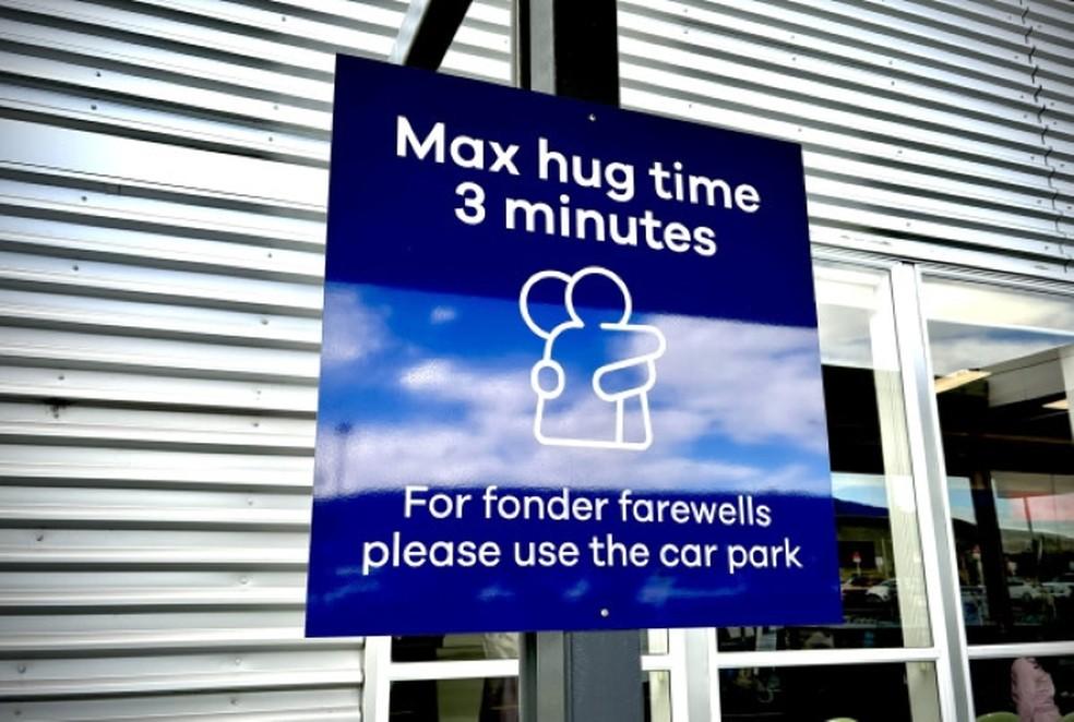 O Aeroporto Internacional de Dunedin, na Nova Zelândia, instituiu uma regra inusitada no segundo semestre deste ano: passageiros têm apenas três minutos para se despedir com abraços na área de desembarque.