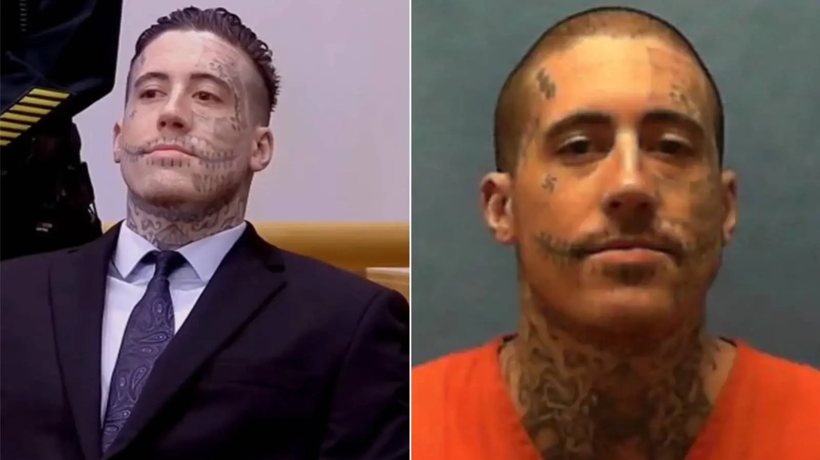 Na mais nova imagem do criminoso, que tem o rosto coberto por tatuagens, ele aparece com a cabeça completamente raspada.