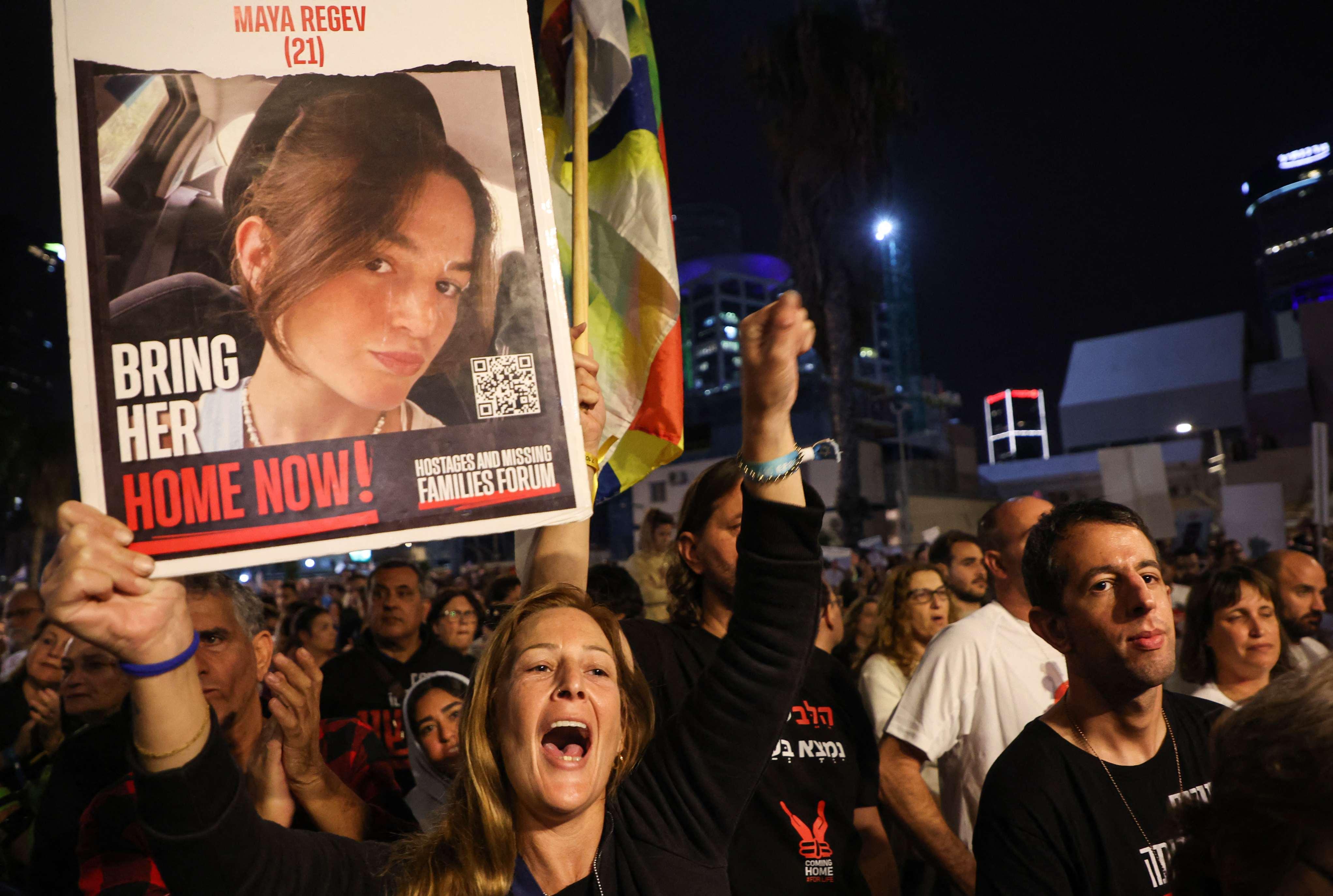 Na cidade de Tel Aviv, cerca de 50 mil israelenses, de todas as idades, se reuniram próximo ao Museu de Arte da cidade para marcar os "50 dias de inferno" - em referência à duração da guerra - e pedir o retorno dos reféns.
