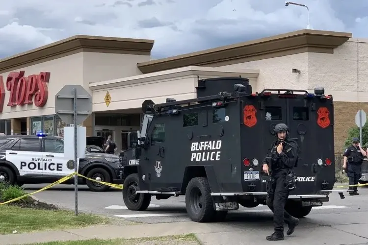 O agressor disparou primeiro contra quatro pessoas no estacionamento do supermercado Tops Friendly e três morreram. Posteriormente, entrou na loja e seguiu atirando.