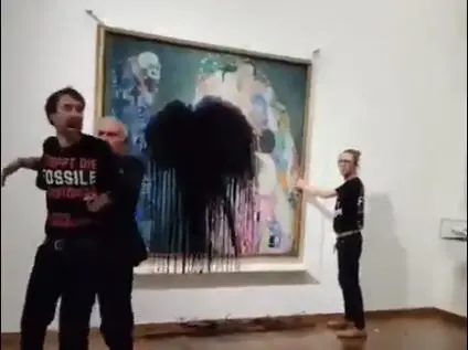 Ativistas jogam tinta preta em obra-prima de Gustav Klimt no Museu de Viena; veja vídeo