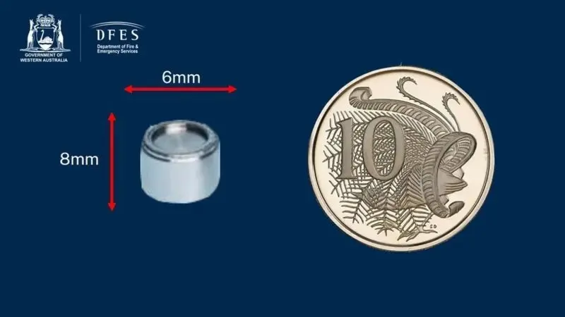 A cápsula é um cilindro prateado menor do que uma unha humana - de apenas 8 mm por 6 mm -, mas que as autoridades afirmam conter Césio-137 suficiente para provocar doenças agudas provocadas pela radiação.