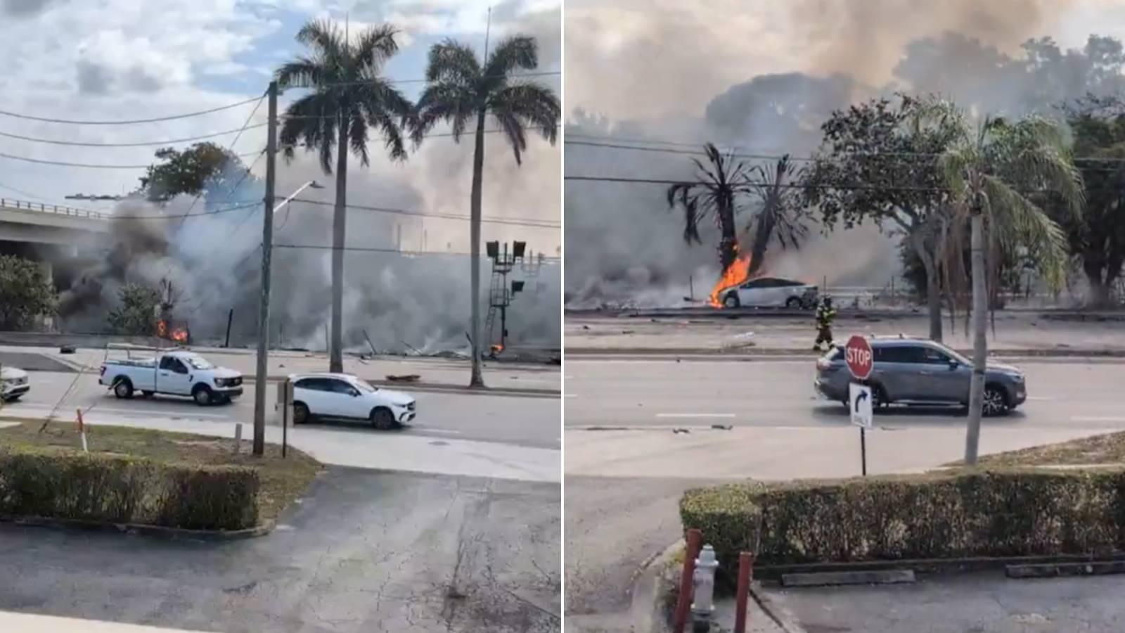 "AVISO DE TRÂNSITO: A Trilha Militar Norte está fechada entre a NW 19th St. e a Butts Rd. devido à queda de uma pequena aeronave. O viaduto da I-95 na Glades Rd. também está fechado nos sentidos leste e oeste. Evite a área", informou a autoridade local.