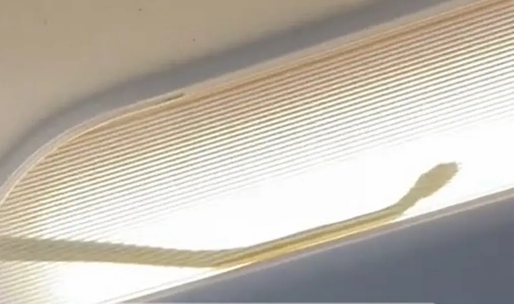As imagens foram feitas por um passageiro. No vídeo, é possível ver a sombra do animal rastejando na parte interna da luminária. Não há informação se se o réptil era selvagem ou pertencia a um dos passageiros.