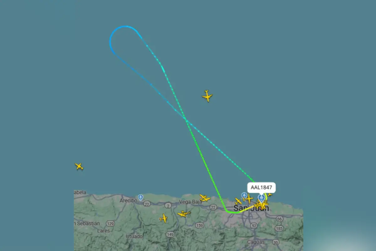 O retorno até Porto Rico aconteceu apenas 30 minutos depois da decolagem.