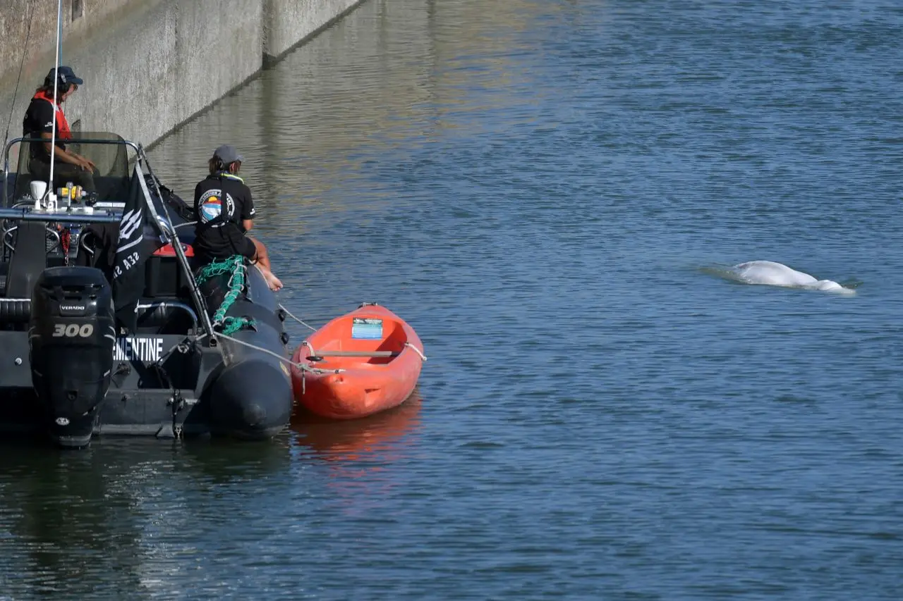 Baleia beluga encontrada no rio Sena está estável, mas sem se alimentar