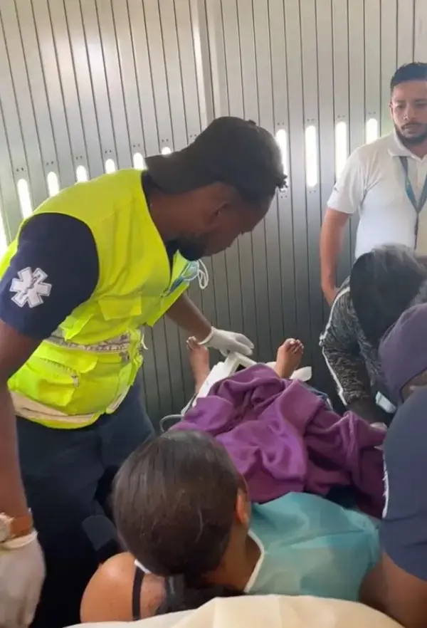 A irmã da grávida avisou ao resto da família que também estava no voo e chamou os atendentes de bordo, que perguntaram se algum passageiro era profissional de saúde. Kendria foi levada para a parte de trás da aeronave e, com o apoio de quatro passageiros, deu luz ao filho.