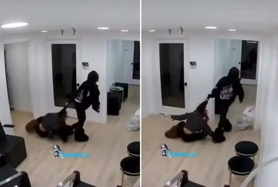 Em meio à tensão, a adolescente tentou sair da loja, mas foi impedida pela cabeleireira, que agarrou o capuz do moletom da cliente e a arrastou de volta para dentro do estabelecimento, a deixando ao lado de uma lata de lixo. Um vídeo gravado pela câmera de segurança do salão flagrou o momento da agressão.