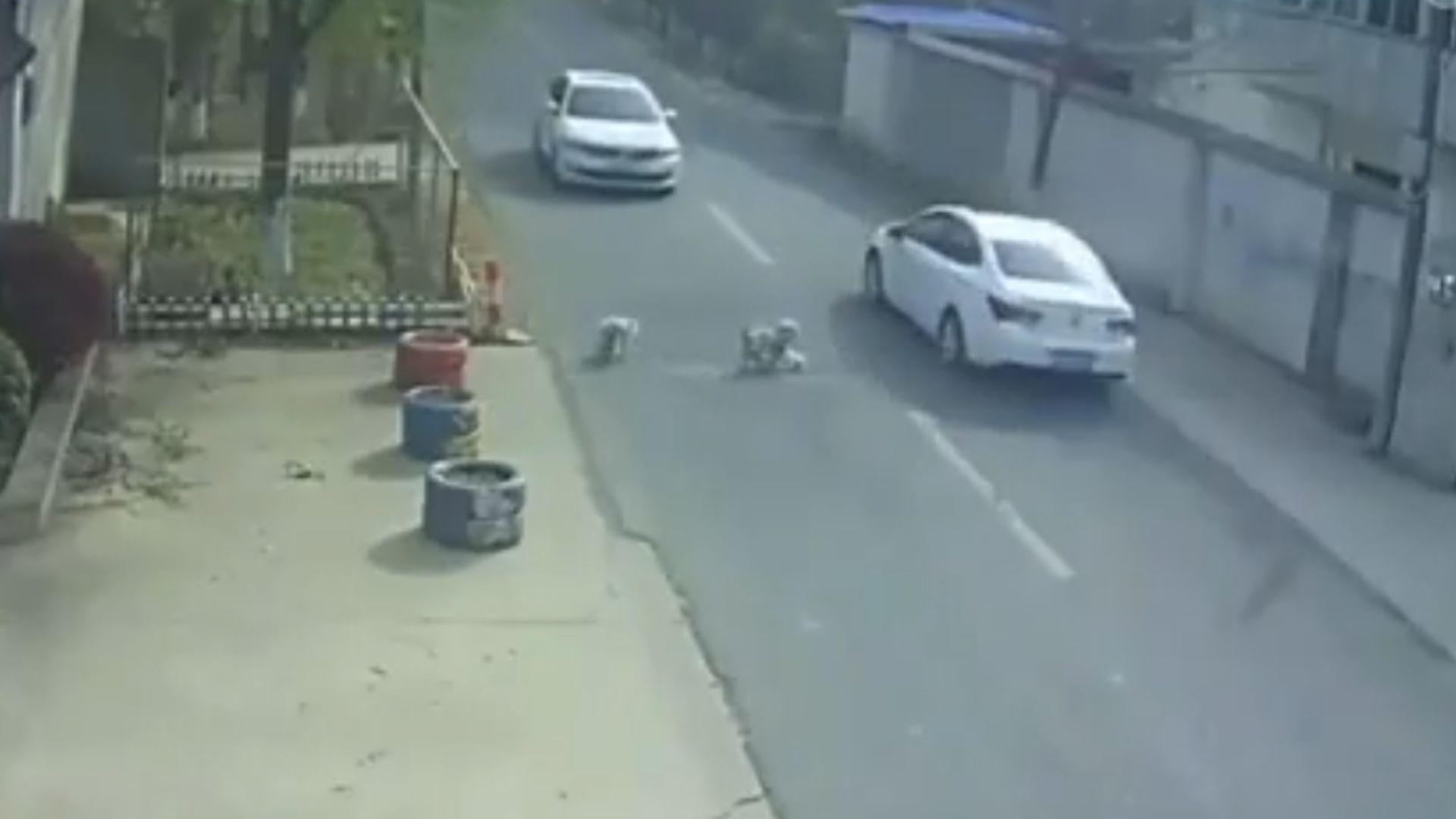 Uma cena digna de cinema foi registrada por câmeras de segurança na China: dois cães de rua salvando um terceiro que foi atropelado no último domingo (30).