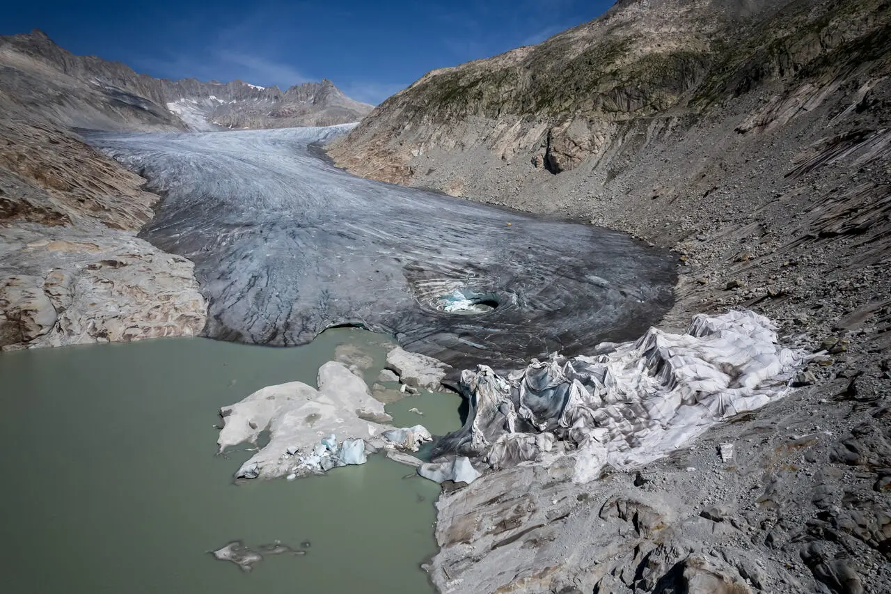 O derretimento foi de 6% em 2022 e próximo de 4% em 2023, os dois anos com maiores perdas de volume desde o início dos registros, aponta o relatório. As conclusões não deixam margem para dúvidas: “As geleiras suíças estão derretendo cada vez mais rápido”.