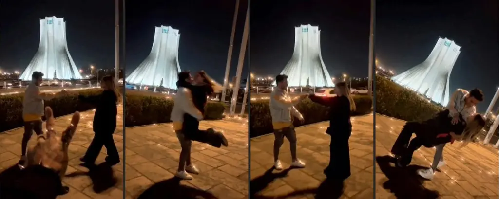 Um casal de jovens iranianos foi condenado a 10 anos e seis meses de prisão após ser visto dançando em um vídeo, gravado em frente à Torre Azadi, conhecido monumento de Teerã, informaram ativistas nesta terça-feira (31).